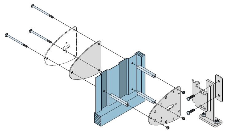 • le piastre di fissaggio in acciaio zincato permettono l’installazione della serratura V06 o della 9087 sulla porta basculante, collegandole via cavo alla centralina dell’automatismo.